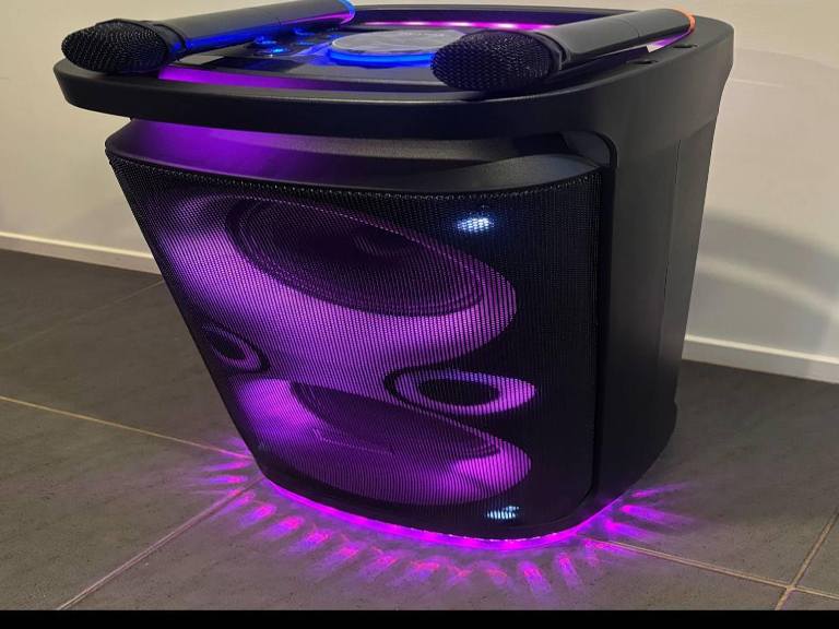 Kareoke machine with two wireless microphones.(recharged battery can play for 5 hours out door)